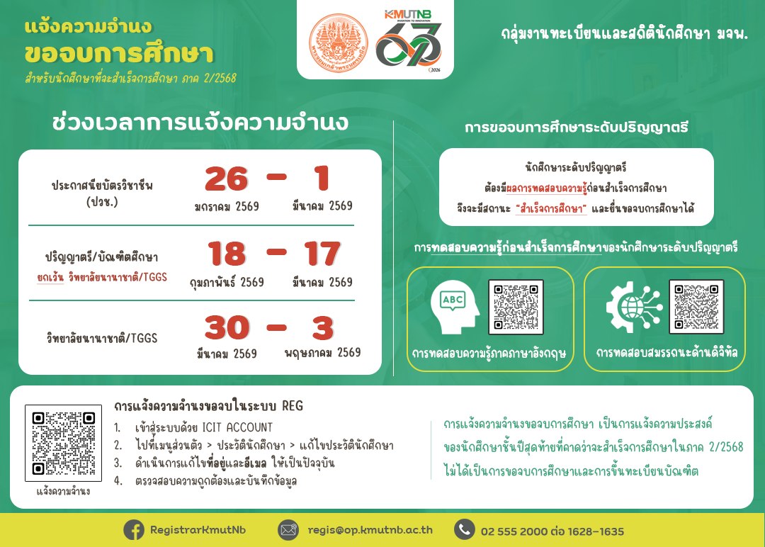 แจ้งความจำนงขอจบการศึกษาสำหรับนักศึกษาที่จะสำเร็จการศึกษา ประจำภาคเรียนที่ 2 ปีการศึกษา 2568