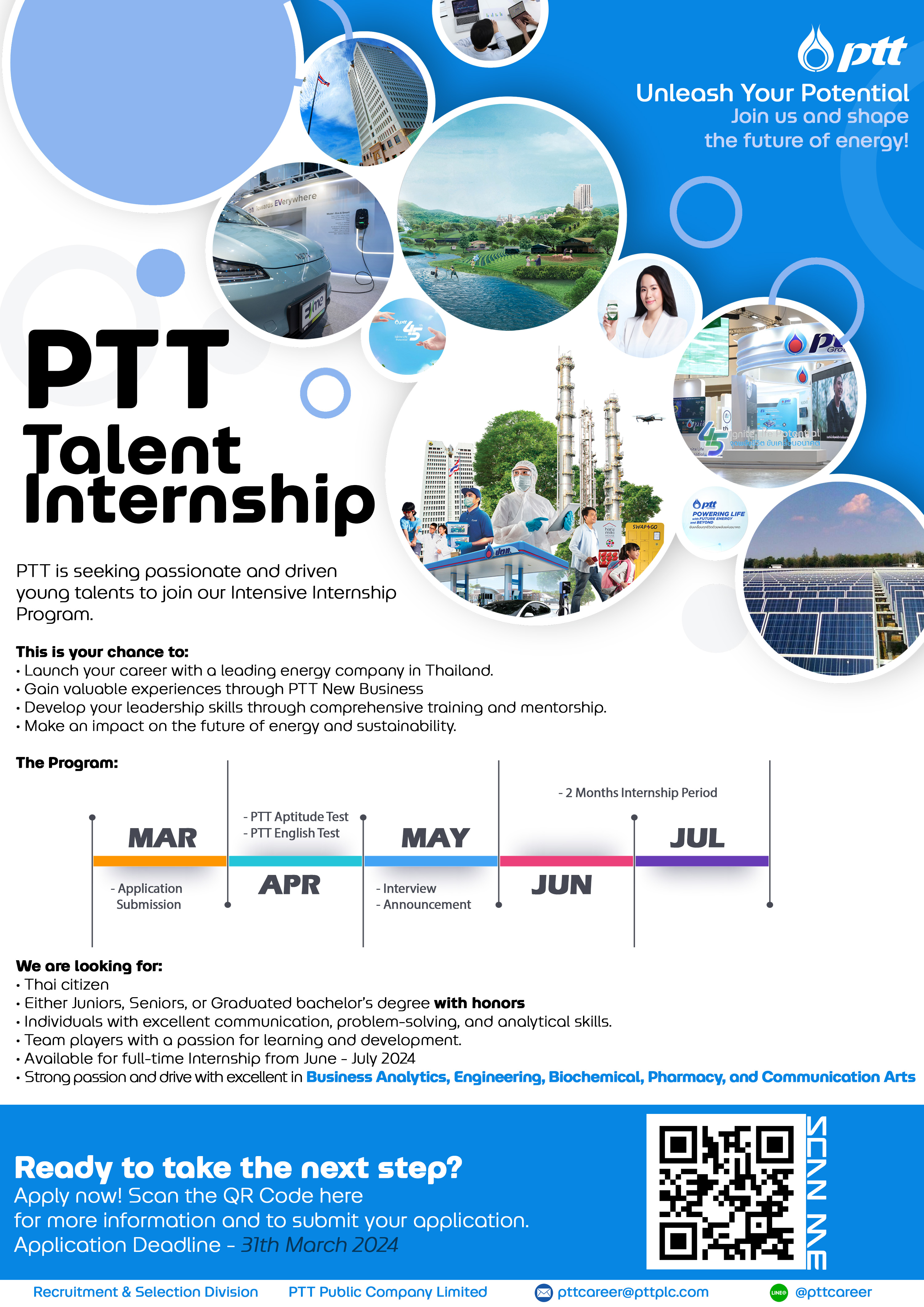 ประชาสัมพันธ์การรับสมัครนักศึกษาฝึกงาน โครงการ PTT Talent Internship ประจำปี 2567