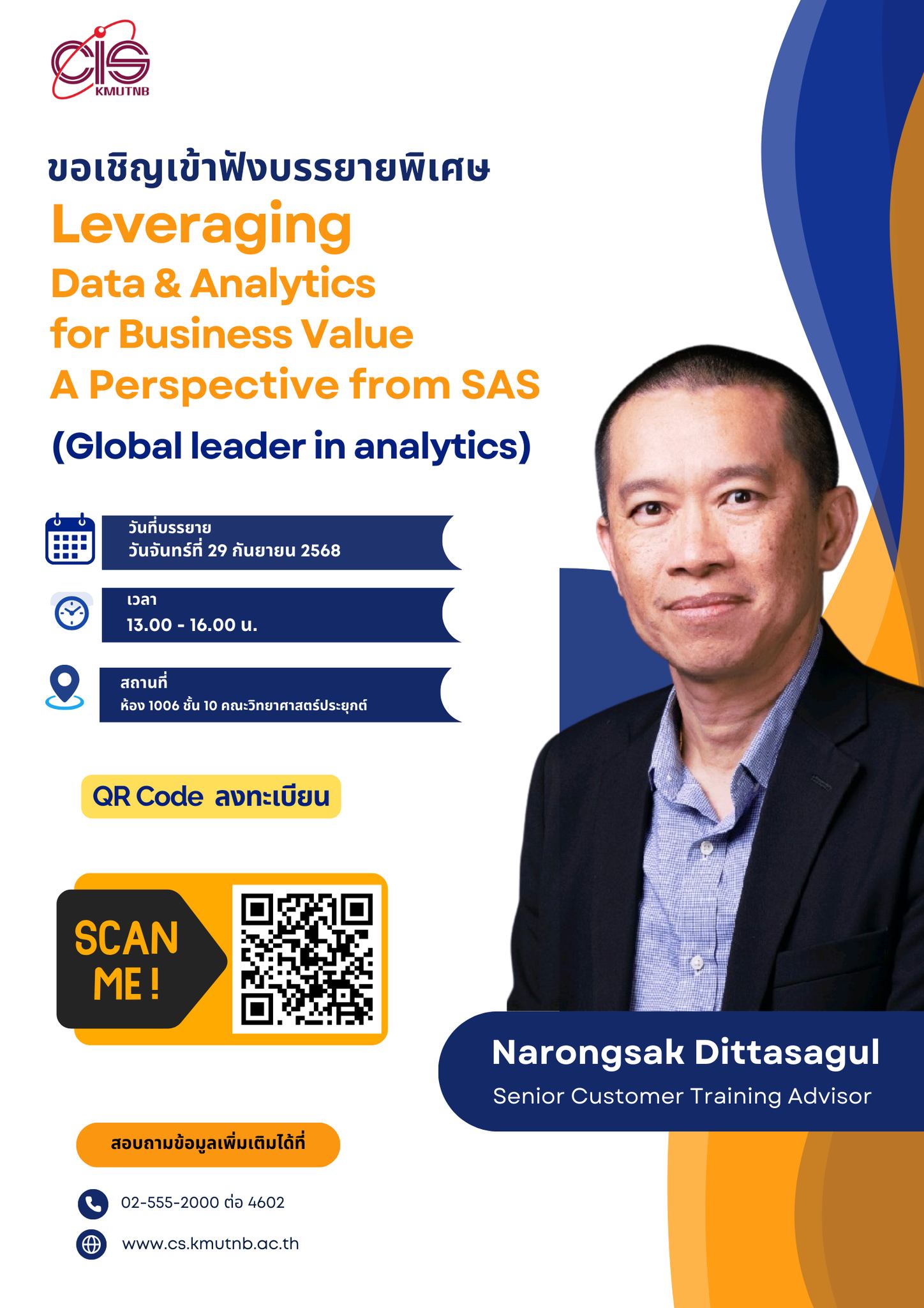 ประชาสัมพันธ์ การบรรยายพิเศษ เรื่อง Leveraging Data & Analytics for Business Value – A Perspective from SAS (Global leader in analytics)