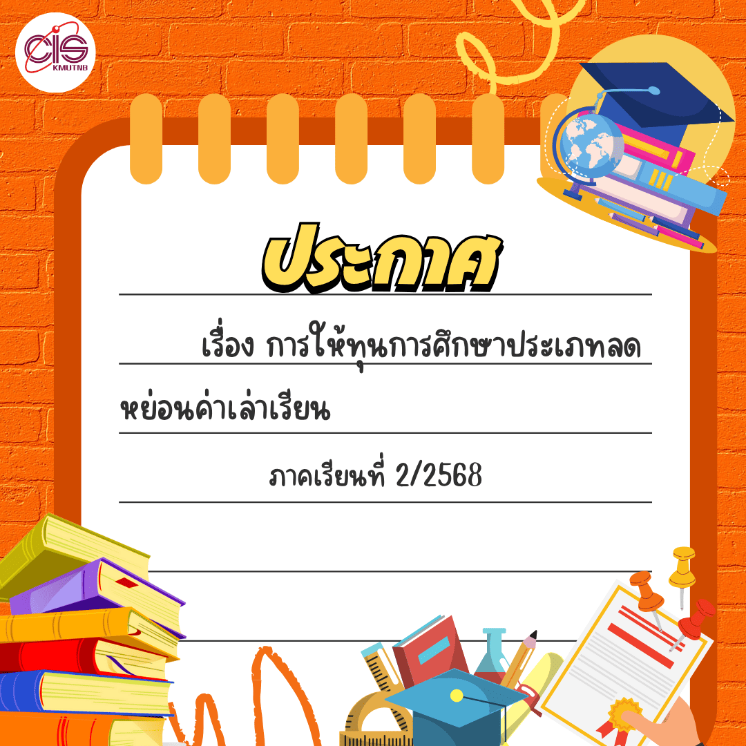 ประกาศคณะวิทยาศาสตร์ประยุกต์ เรื่อง การให้ทุนการศึกษาประเภทลดหย่อนค่าเล่าเรียน ประจำภาคเรียนที่ 2/2568