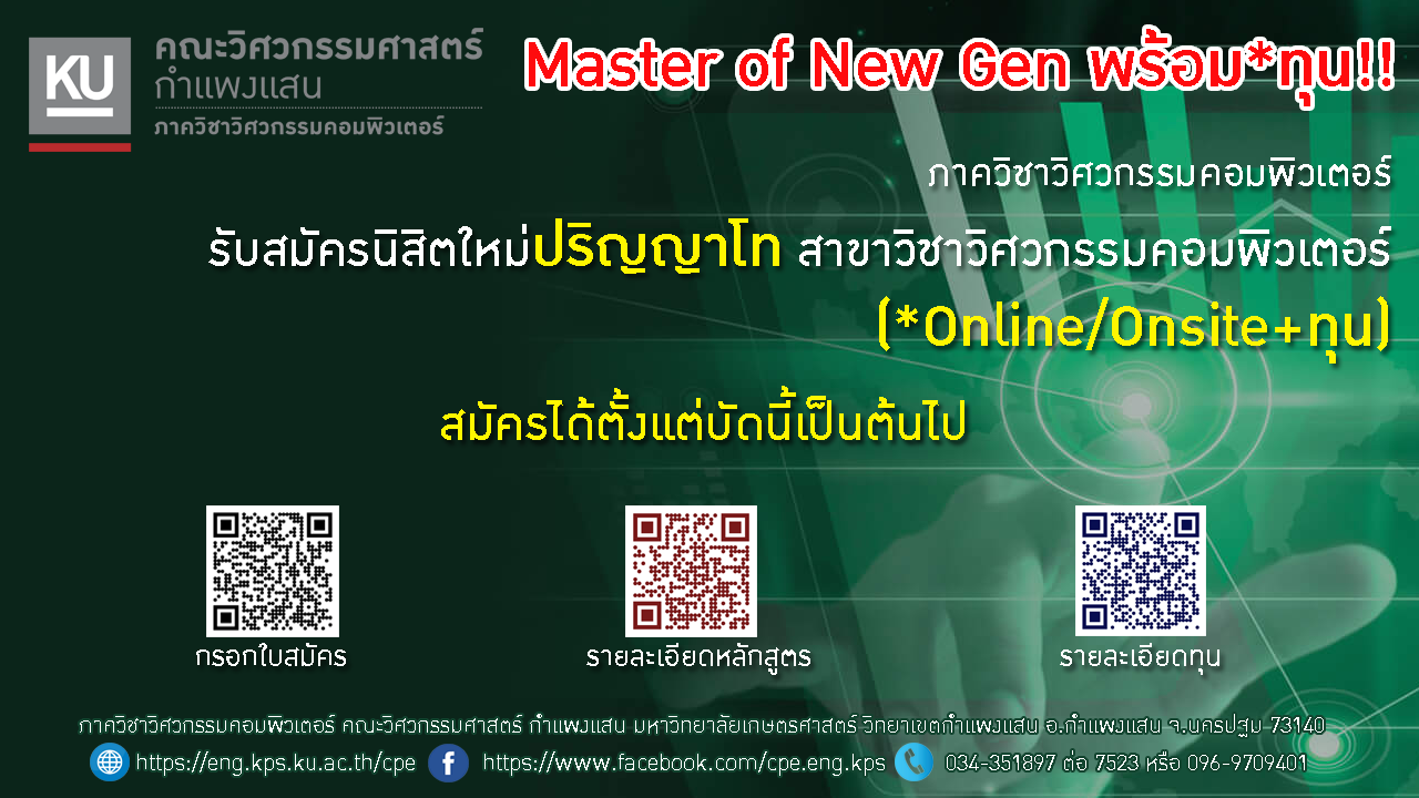 ภาควิชาวิศวกรรมคอมพิวเตอร์ มหาวิทยาลัยเกษตรศาสตร์ เปิดรับสมัครนิสิตใหม่ ป.โท สาขาวิชาวิศวกรรมคอมพิวเตอร์