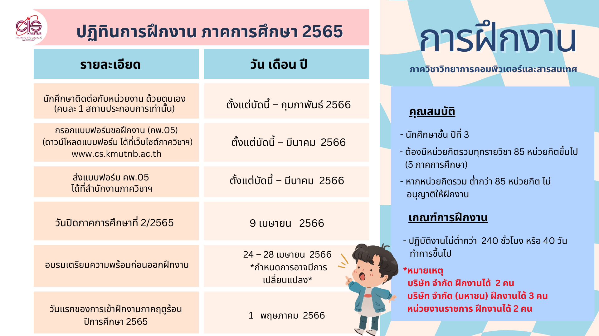 ประกาศ การฝึกงาน ภาควิชาวิทยาการคอมพิวเตอร์และสารสนเทศ