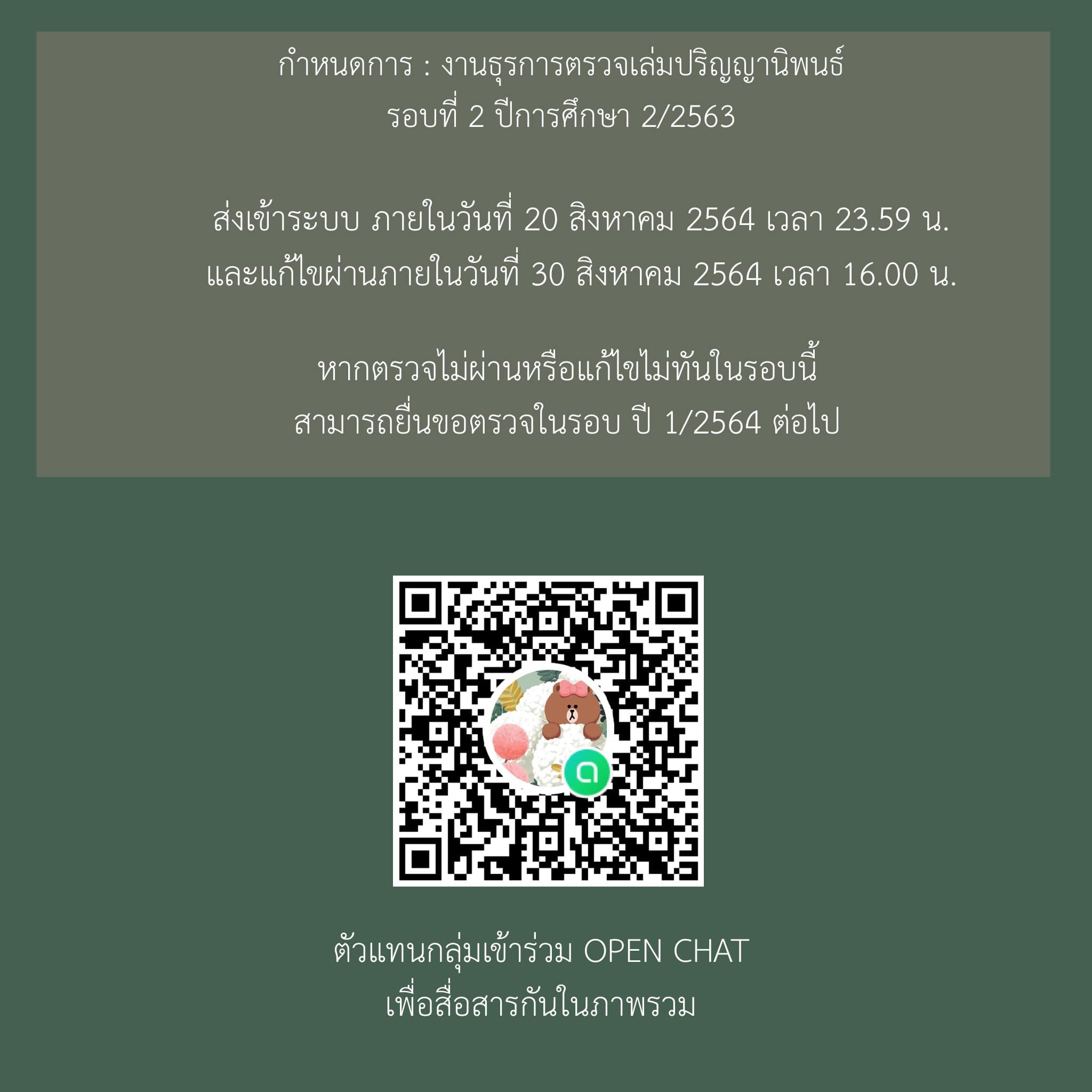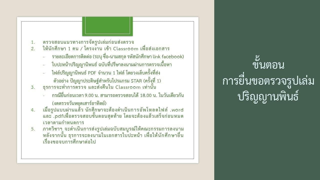 นักศึกษาที่มีความประสงค์ตรวจรูปเล่มปริญญานิพนธ์ (เฉพาะผู้ยื่นเอกสารใน classroom แล้วเท่านั้น)