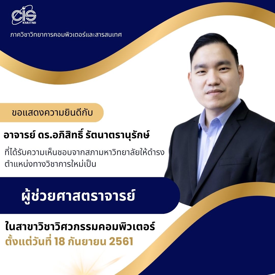 ภาควิชาวิทยาการคอมพิวเตอร์และสารสนเทศ ขอแสดงความยินดีกับ อาจารย์ ดร.อภิสิทธิ์ รัตนาตรานุรักษ์
