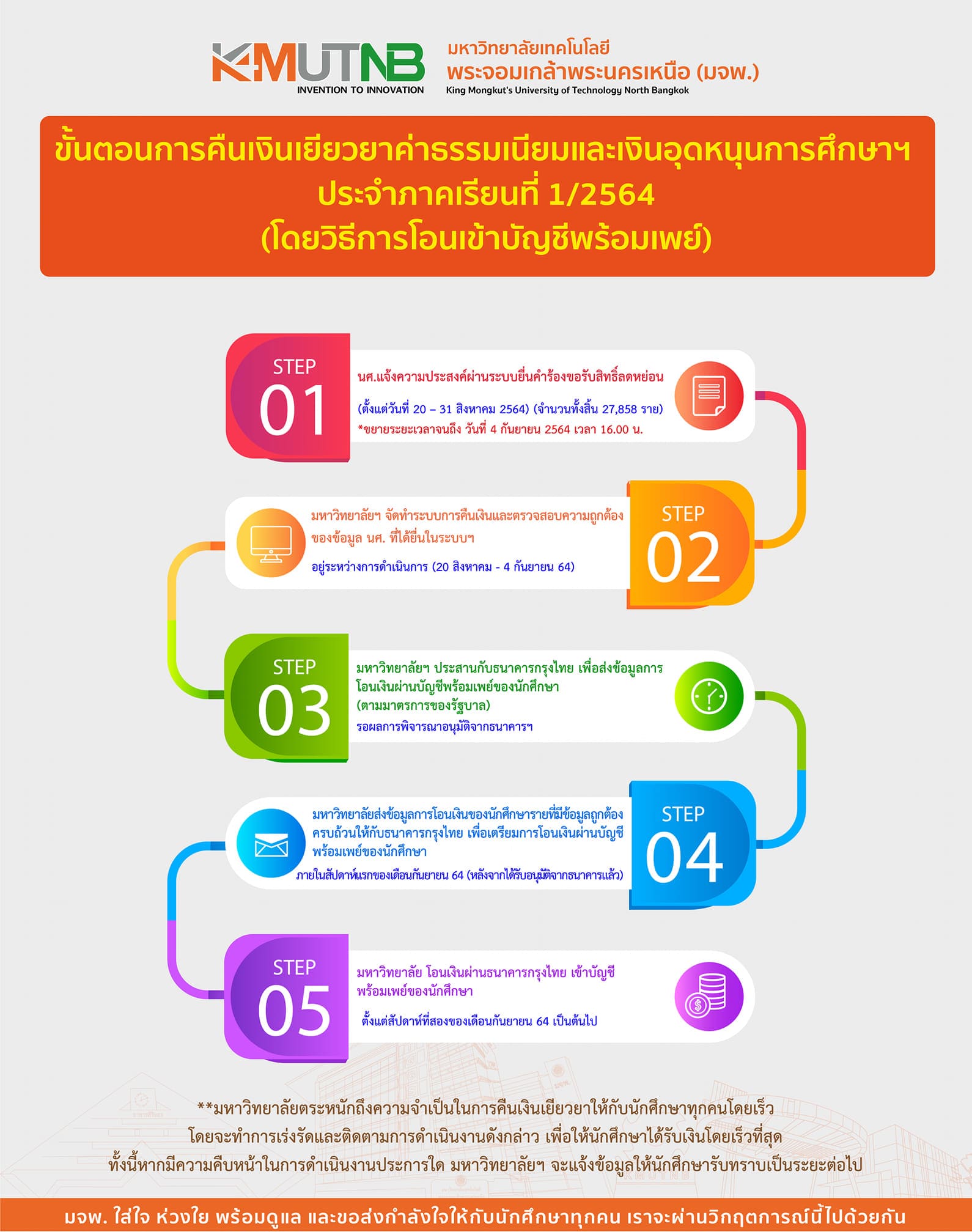 ขั้นตอนการคืนเงินเยียวยาค่าธรรมเนียมและเงินอุดหนุนการศึกษาฯ