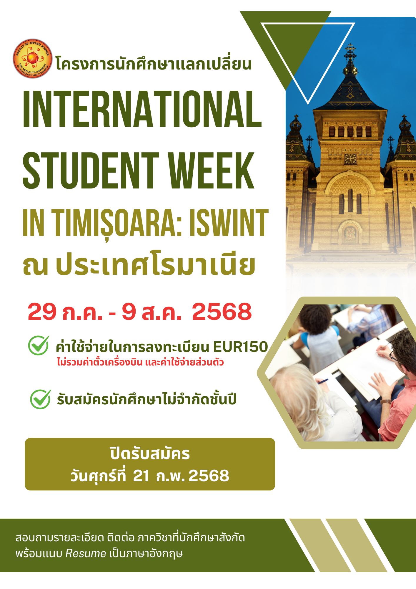 ขอเชิญนักศึกษาที่สนใจเข้าร่วมโครงการนักศึกษาแลกเปลี่ยน International Student Week in Timișoara: ISwinT ณ ประเทศโรมาเนีย