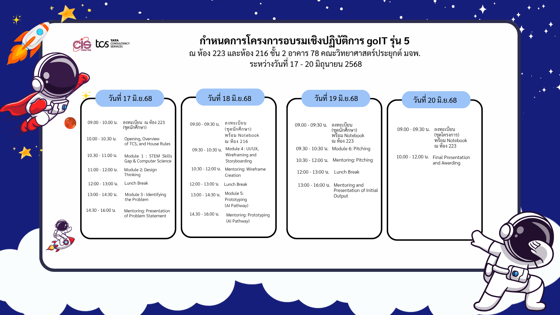 กำหนดการกิจกรรม โครงการอบรมเชิงปฏิบัติการ goIT รุ่น 5